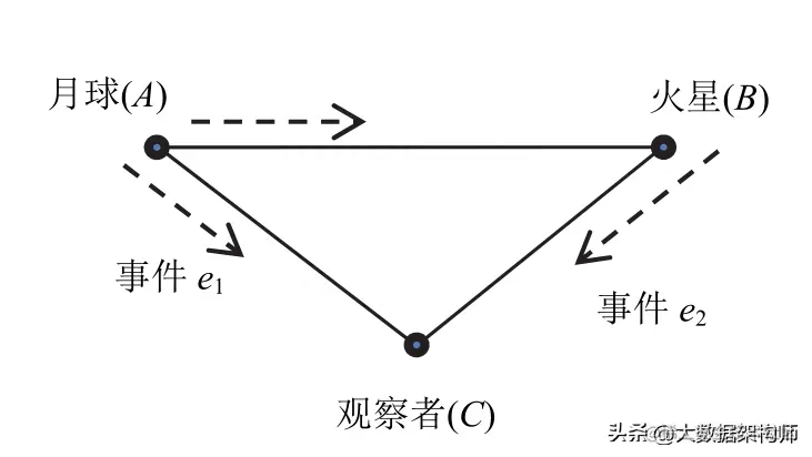 回答者之所以如此判断,实际上是利用了很多物理学的信息和知识,例如“月球、火星、地球三者的远近关系”这一位置信息,光速这一速度信息,以及“速度×时间=位移”这一物理原理。但在分布式算法中,我们不考虑物理学的知识,例如月球、火星、地球三者的空间未知关系是未知的,光速也不清楚,仅基于常识讨论先后,那么答案又是什么呢?——取决于观察者。