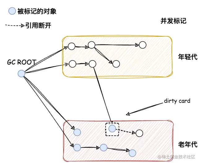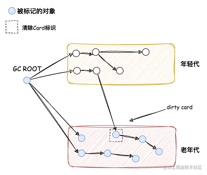 当应用线程试图修改老年代的某个对象引用时,把这些发生变化的对象所在的Card标识为Dirty,这样后续就只需要扫描这些Dirty Card的对象,从而避免扫描整个老年代。