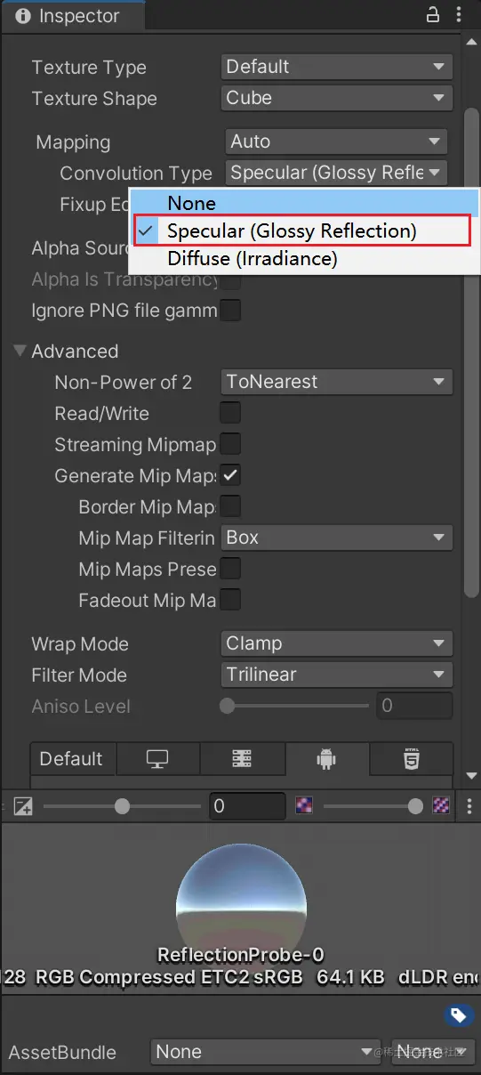 在Unity官方手册中提到,该选项会以镜面卷积的方式处理立方体贴图的Mipmap: