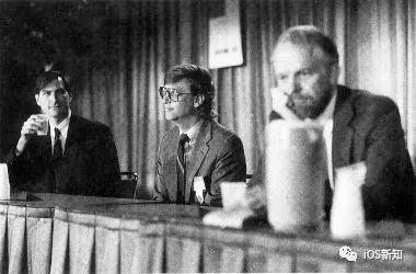 史蒂夫·乔布斯、比尔·盖茨和约翰·沃诺克,1989 年