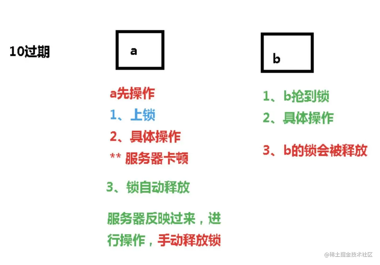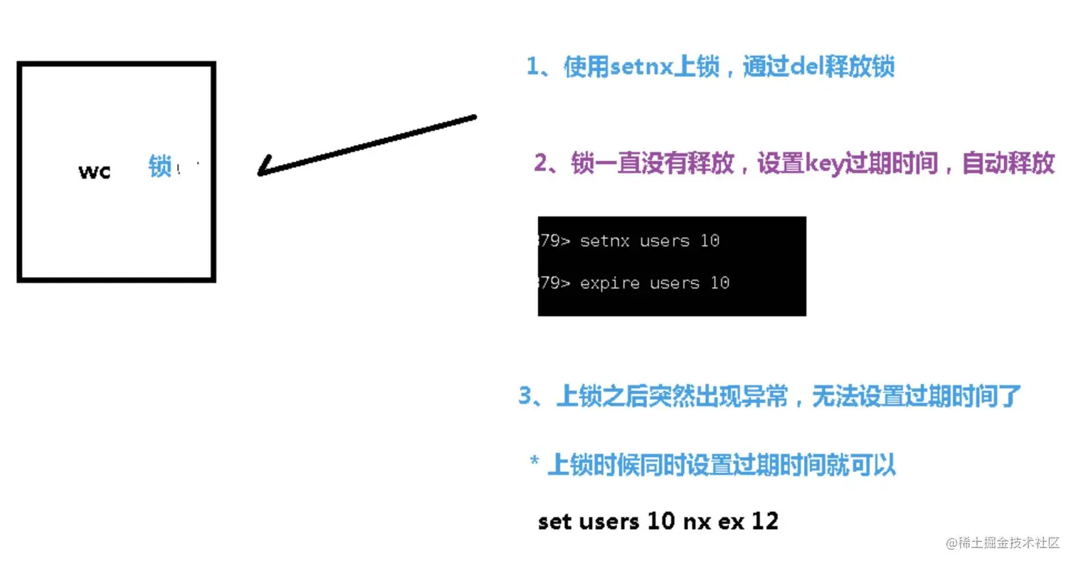 // 第一种: lock 与过期时间中间不写任何的代码。