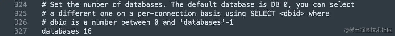 - 默认16个数据库,类似数组下标从0开始,初始默认使用0号库