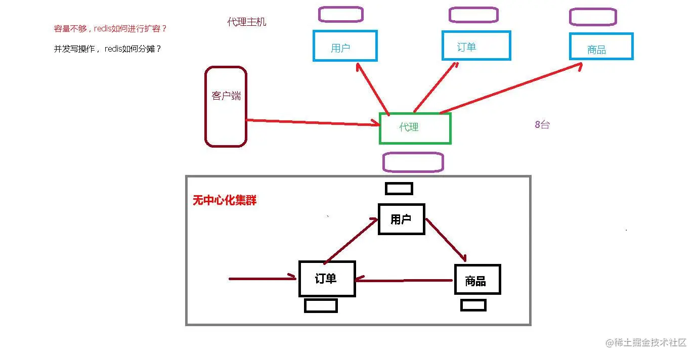 - Proxy集群代理模式:Proxy 功能,让 Cluster 拥有像单实例一样的接入方式,降低大家使用cluster的门槛。不过需要注意的是代理不改变 Cluster 的功能限制,不支持的命令还是不会支持,比如跨 slot 的多Key操作。