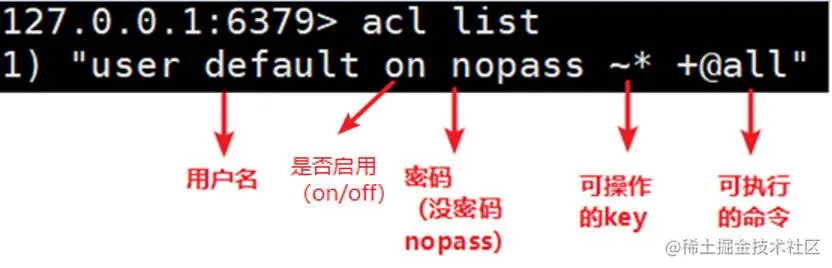 在Redis 5版本之前,Redis 安全规则只有密码控制,还有通过 rename 来调整高危命令,比如 flushdb,KEYS*,shutdown 等。Redis 6 则提供ACL的功能对用户进行更细粒度的权限控制: