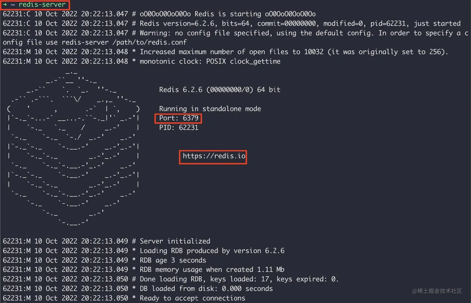 redis-server /Users/liuwq/devTools/redis-6.2.6/redis.conf