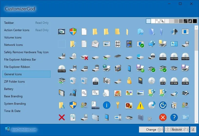 CustomizerGod是一款可以让你定制你的系统外观的软件,它可以让你更换系统中的各种图标、图像、颜色等。CustomizerGod支持更换开始菜单、任务栏、通知中心、锁屏、登录屏幕等部分的外观,还可以更换系统音效和光标。CustomizerGod还提供了多种主题和资源,让你可以轻松地找到你喜欢的风格。