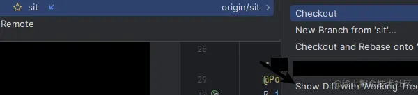 - 然后转到(check out即签出)你自己的分支,在git上点show different