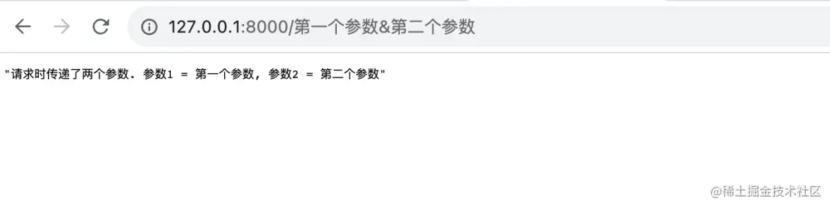 return f"请求时传递了两个参数. 参数1 = {item1}, 参数2 = {item2}"