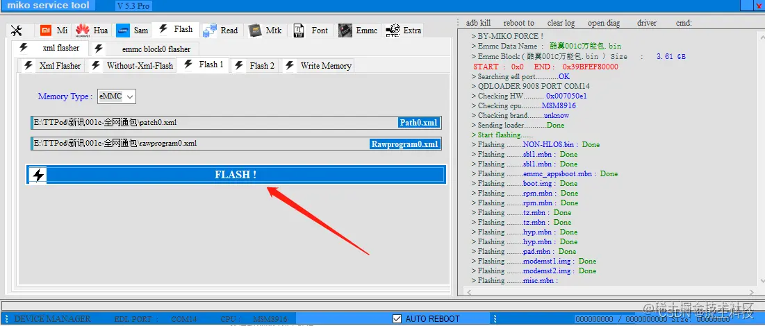 进入9008后 用软件选择本地刷机包-一键输入