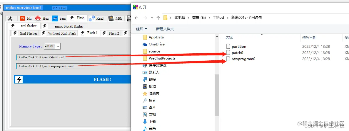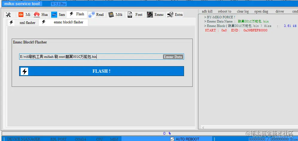 刷机方法有两种-通过 emmc 选择 xxxxxx.bin的文件一键刷