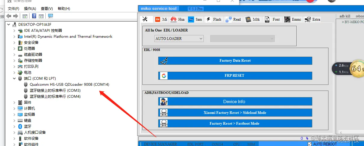 通过软件进入9008,正常情况下,是9091