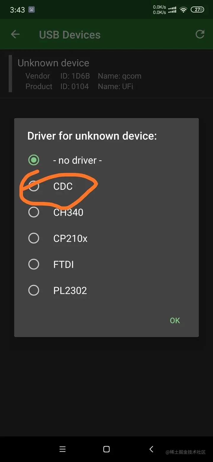 没有读取到设备,点击device,然后点CDC