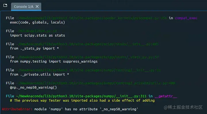 一次,在运行一个Python代码时,发现出现报错module 'numpy' has no attribute '_no_nep50_warning',如下图所示。