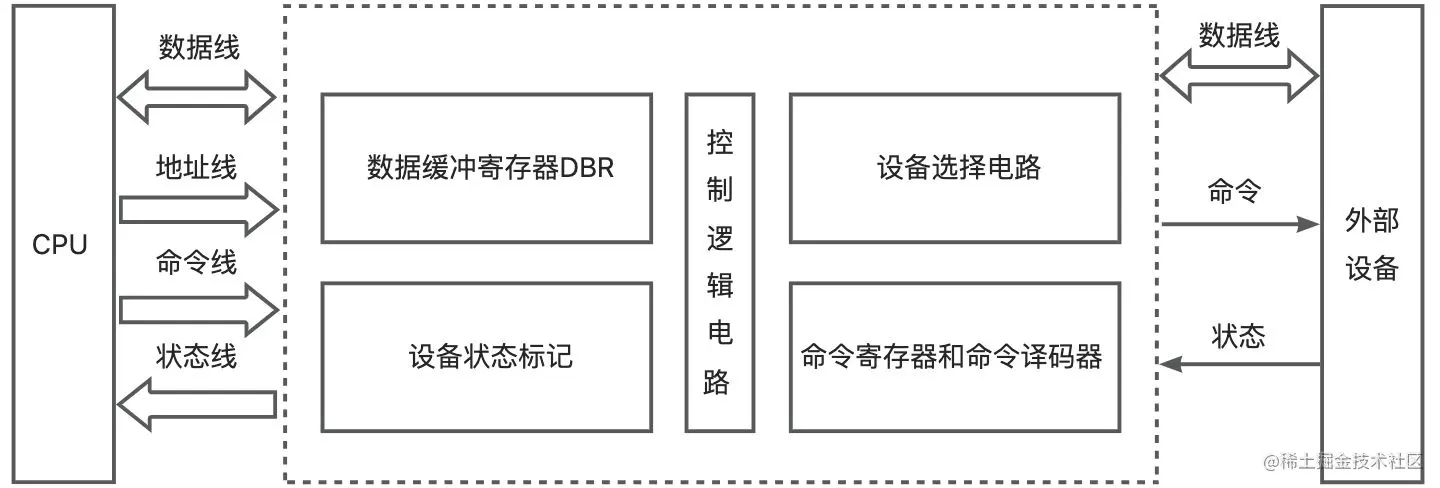 - 反映设备状态的功能(功能)- 设备状态标记 I/0接口的基本组成可以如下图所示