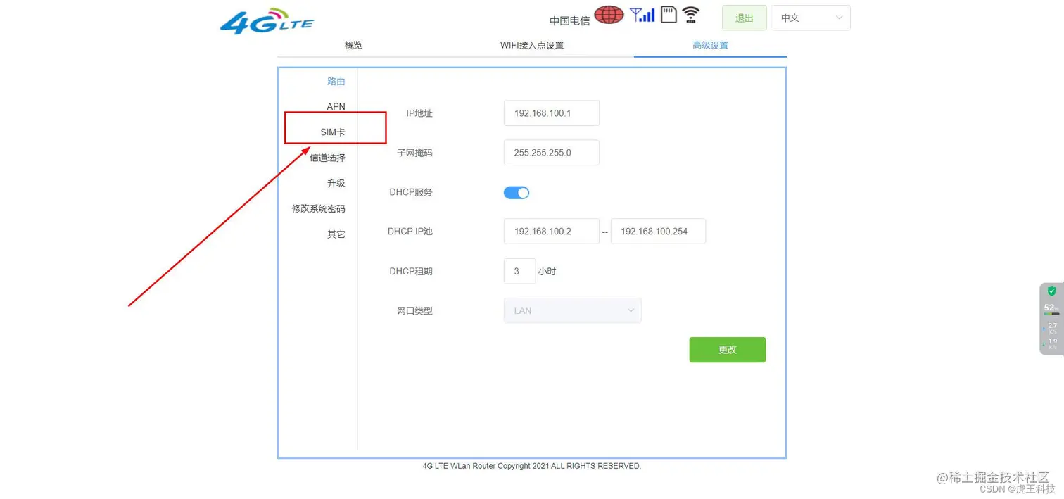 打开 WiFi的 网关 例如 192.168.100.1 每个设备可能不一样 自行看
