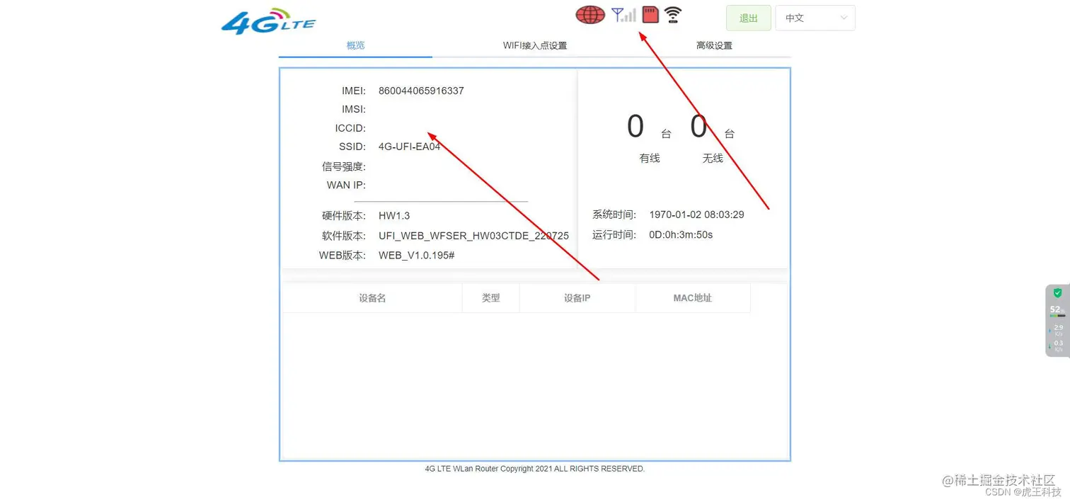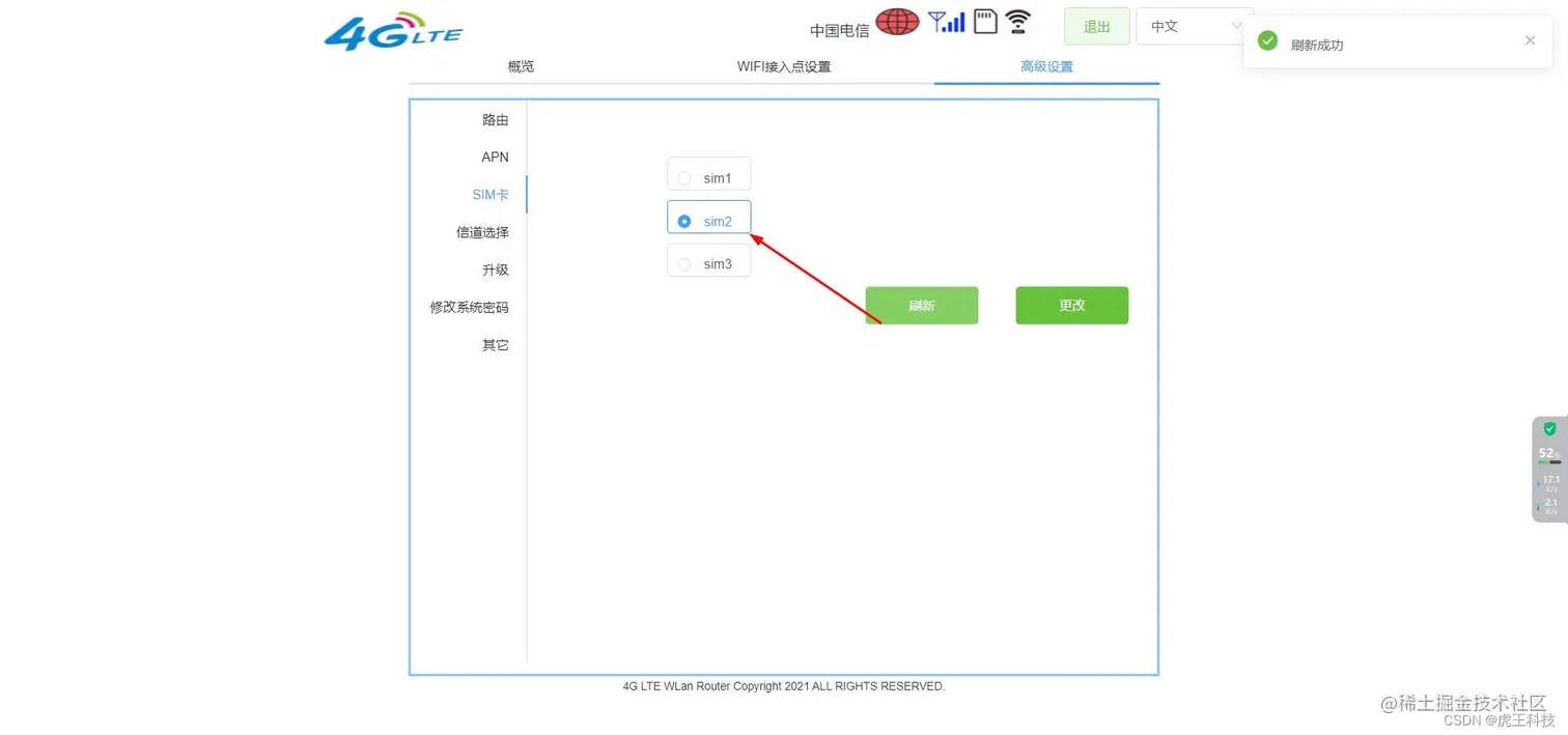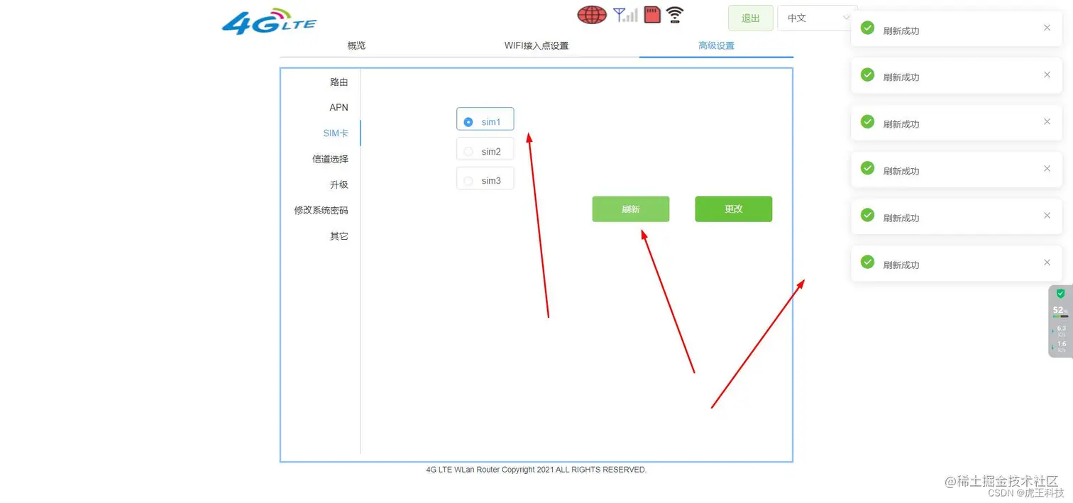 我这个演示 设备没卡 切换成自己卡 就 会有信号