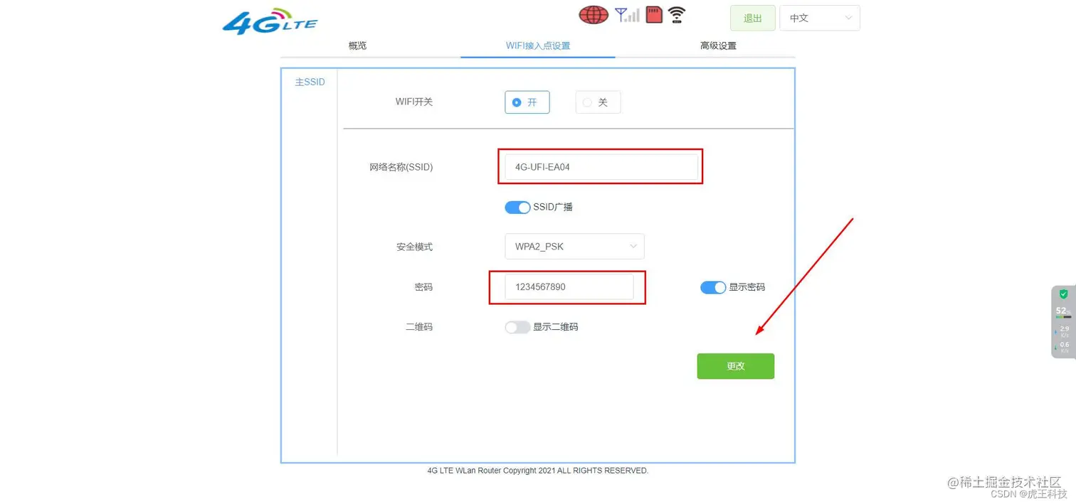 点击 接入点设置 就是 改WiFi名字 和密码 名字不能用中文