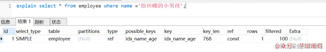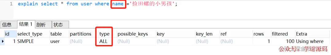 一般来说,我们需要重点关注type、rows、filtered、extra、key。