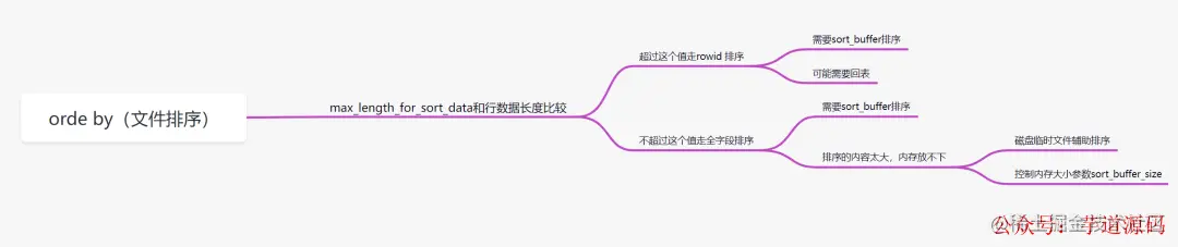 - 如果是全字段排序,需要查询返回的字段,都放入sort buffer,根据排序字段排完,直接返回
