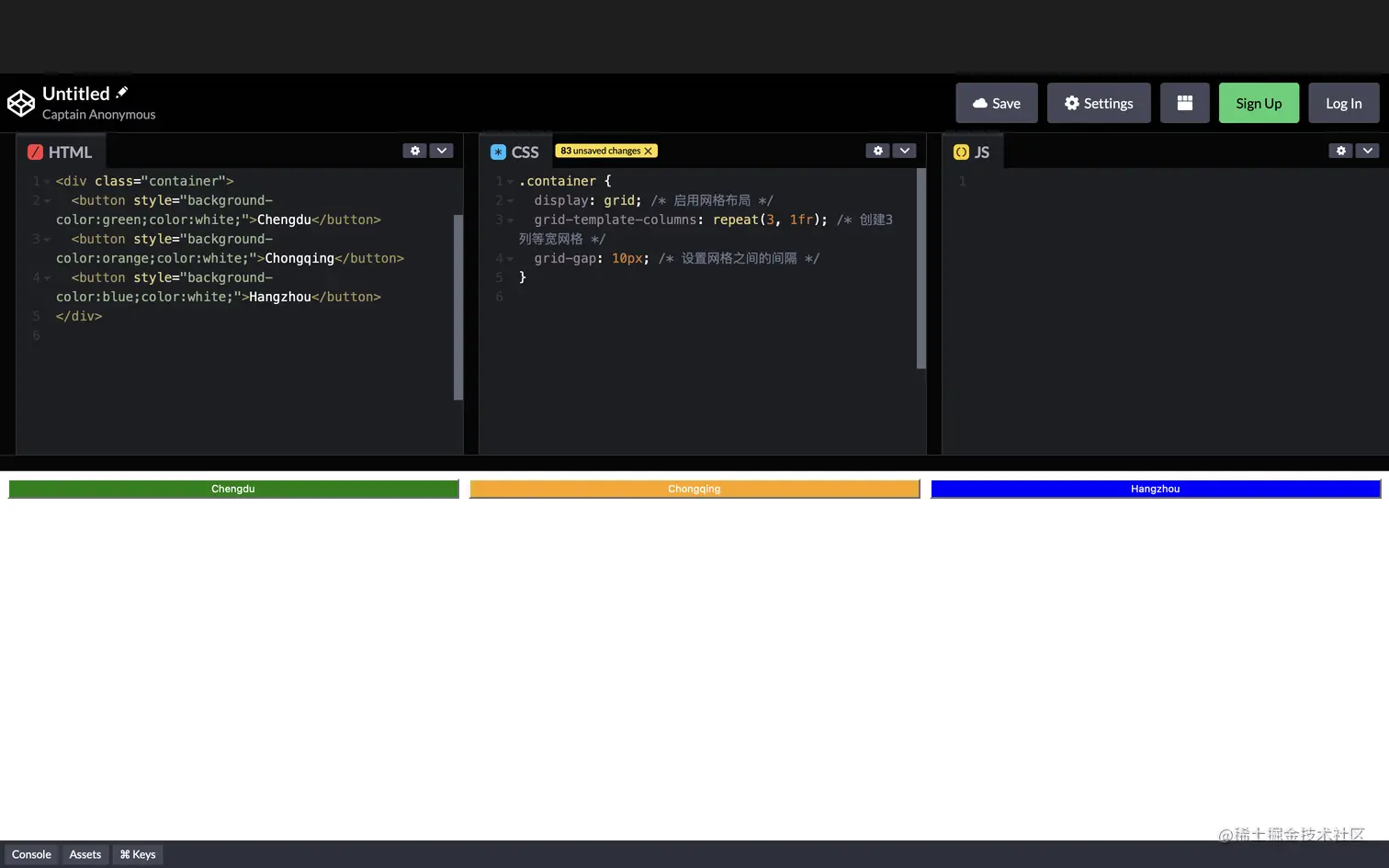 grid-template-columns: repeat(3, 1fr);属性创建了一个包含三列的网格,每列宽度相等。 -