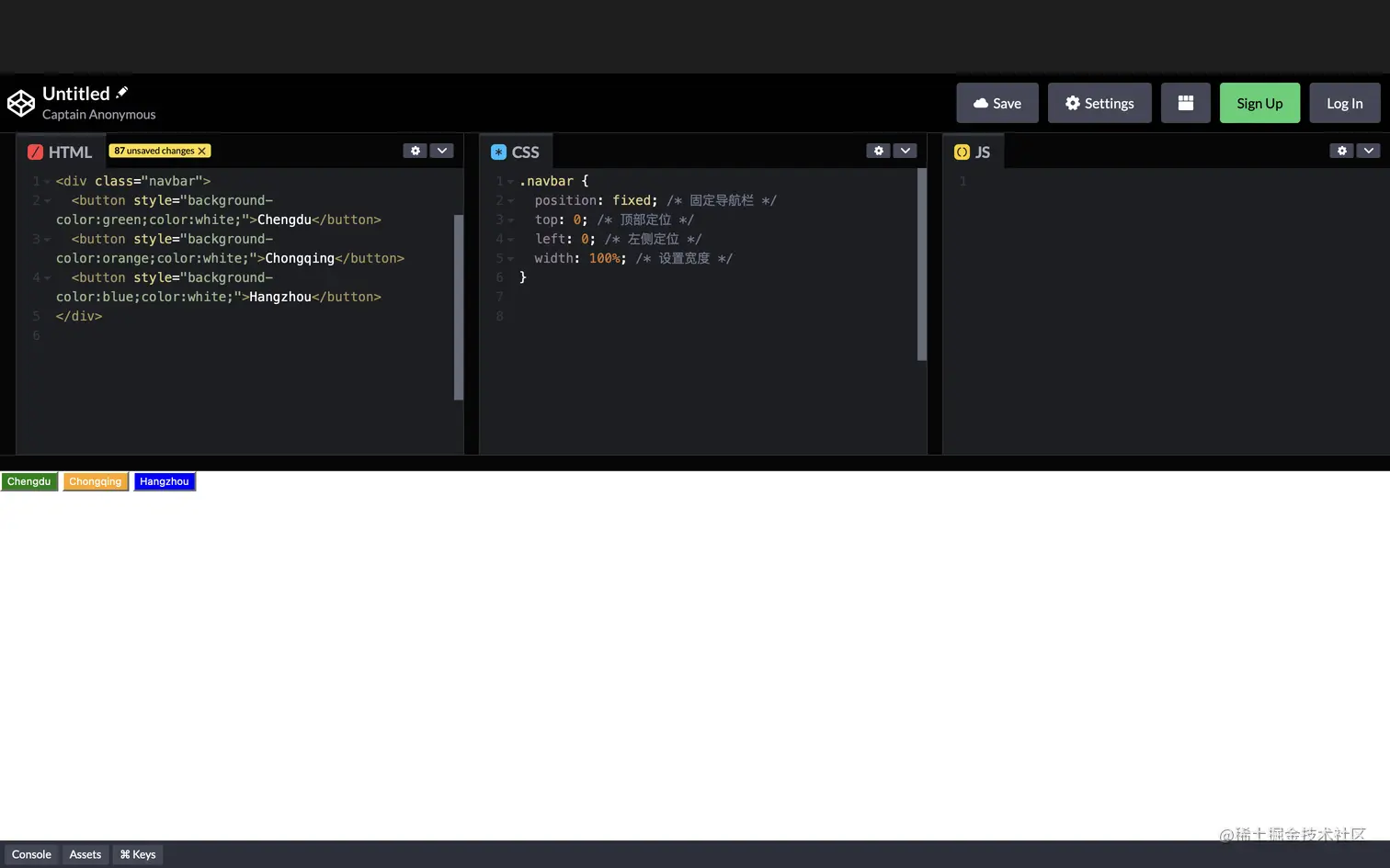 top: 0;和left: 0;属性将导航栏定位在页面的左上角。 -