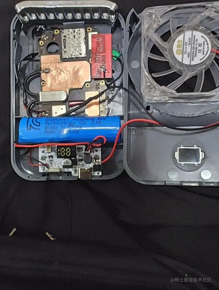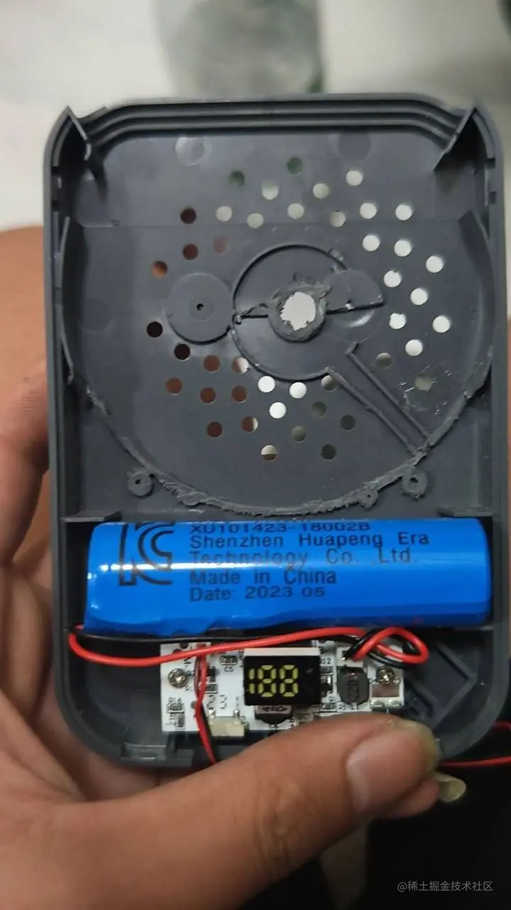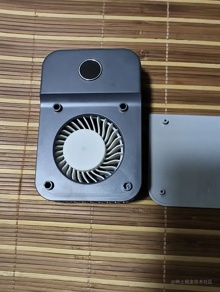 主板部分就完成啦,好棒好棒 下面我们就开始掏外壳 这里我用的手持风扇外壳,盖子揭开可以看到里有两颗螺丝,拧开之后