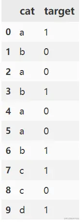 df = pd.DataFrame({'cat': ['a', 'b', 'a', 'b', 'a', 'a', 'b', 'c', 'c', 'd'],