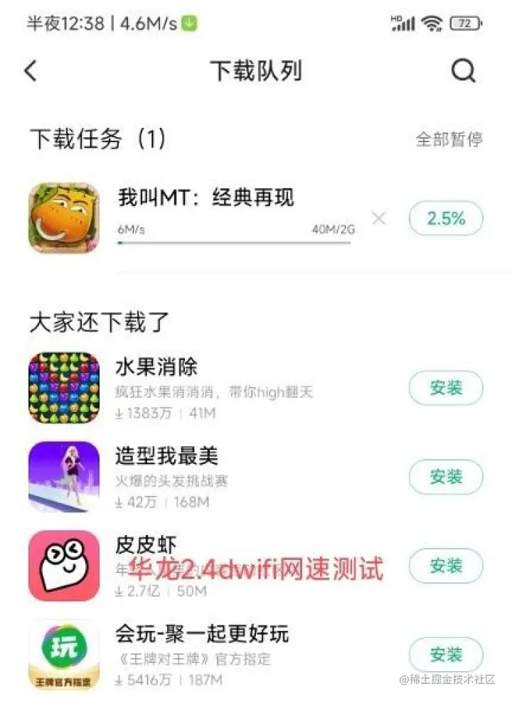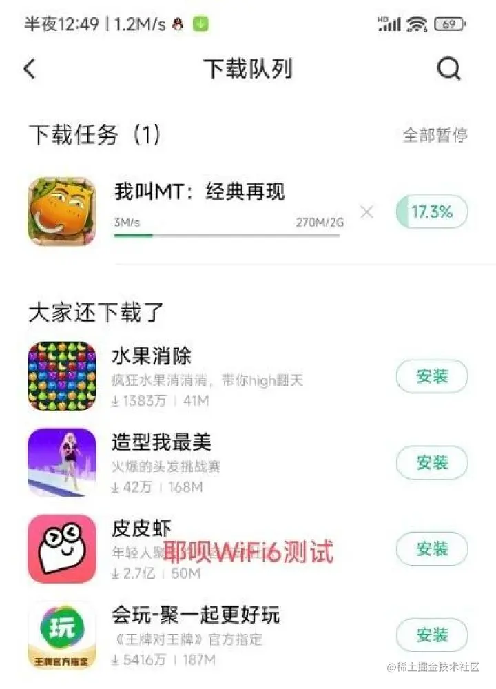 可以看见同位置WiFi6耶呗居然被华龙打下去,让我太惊讶了,华龙基本顶着2.4gwifi最高速率跑的,而耶呗WiFi6只有华龙一半的速度,真的吓了我一跳