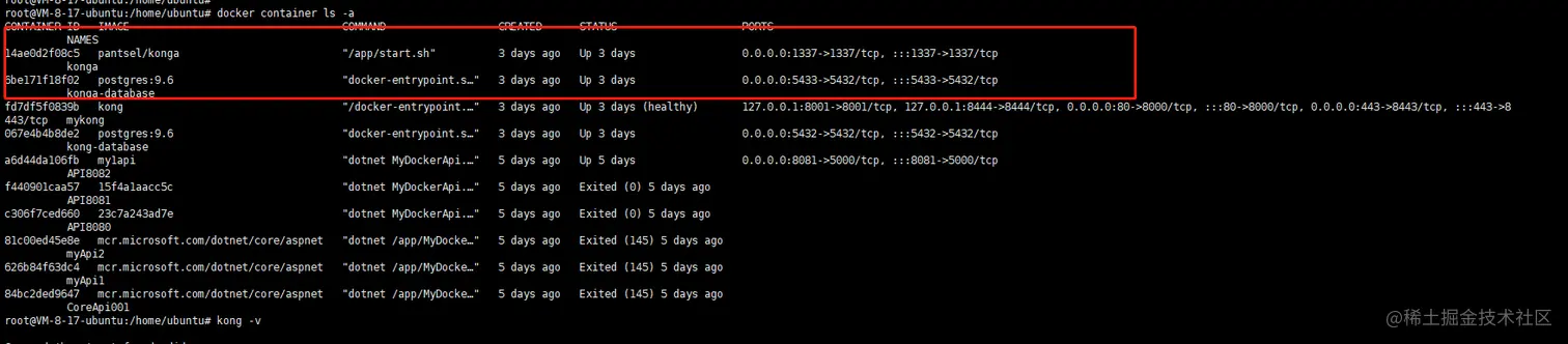 -e "KONG_DATABASE=postgres" \ 选择postghres数据库