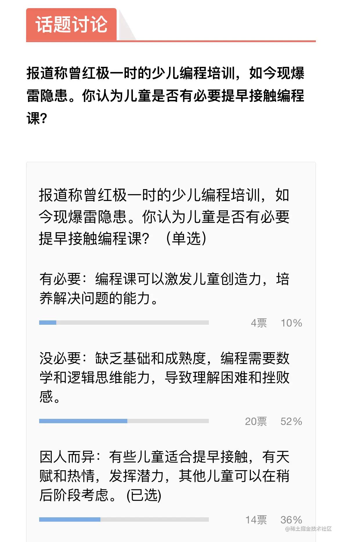 根据投票结果可以看出,大家有不同的想法。小编认为家长应该根据孩子的个性特点和兴趣爱好灵活调整,注重培养他们的创新精神和独立思考能力。