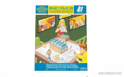 如图所示,这是一个杂志封面图的折叠效果,折叠前后的图片内容完全不违和,瞬间对这个图片内容的排版设计很是称赞,但这块不再本次文章的讨论范围,本次文章是要用纯CSS实现这个折叠效果。