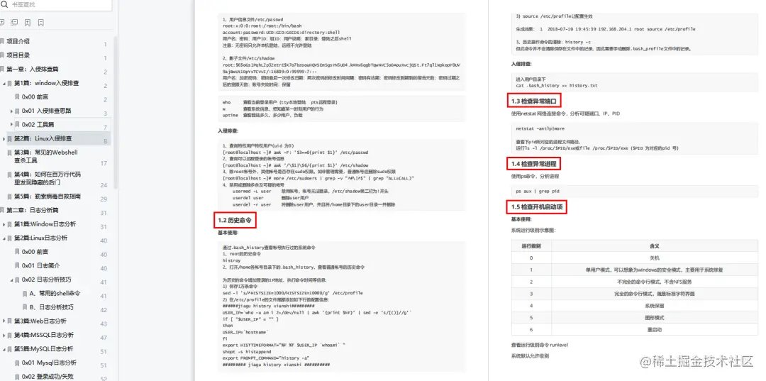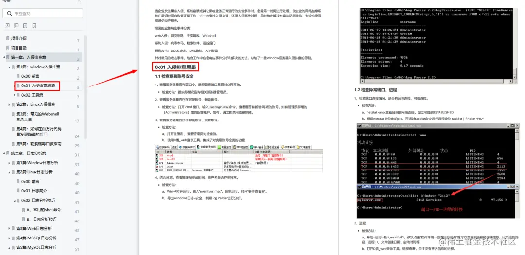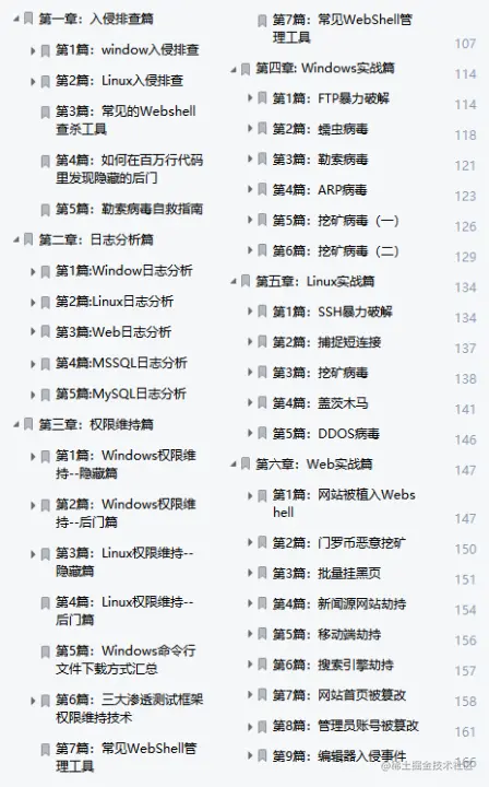为此,给大家分享一份应急响应实战笔记,共168页6大章,包括入侵排查、日志分析、权限维持、实战等内容,图文并茂,内容详尽,非常适合安全人/爱好者学习参考。