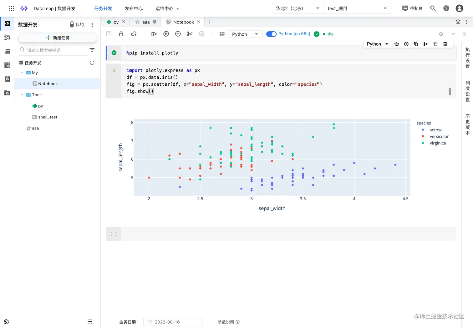 图:火山引擎 DataLeap 数据开发 Notebook 任务界面