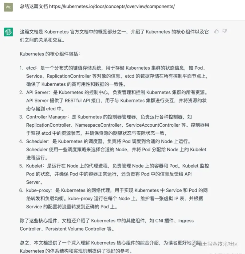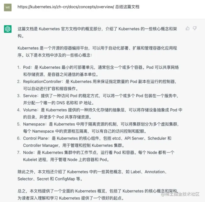 例如,如果我想学习有关K8S的知识,我可以给它一个文档的链接,让它帮我总结。