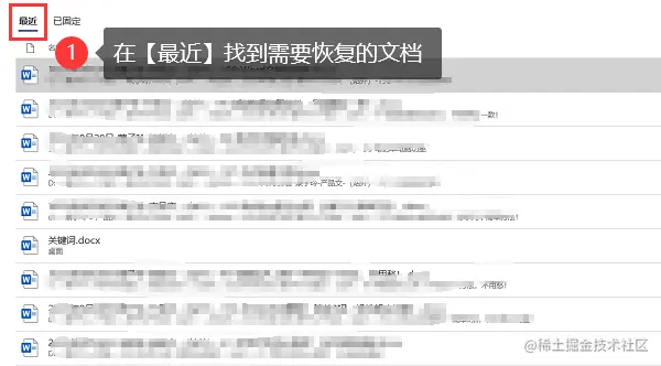 4.选择你想恢复的文档,然后点击【恢复】 。