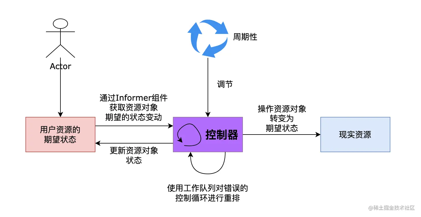 - 比较两者的差异,然后运行控制器操作现实中的资源对象,将资源对象的真实状态修正为Spec中定义的期望状态。