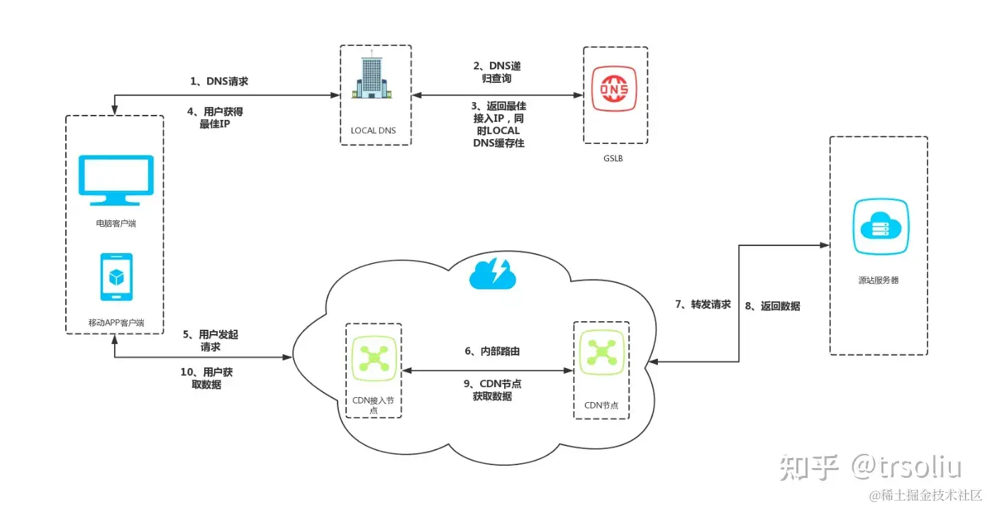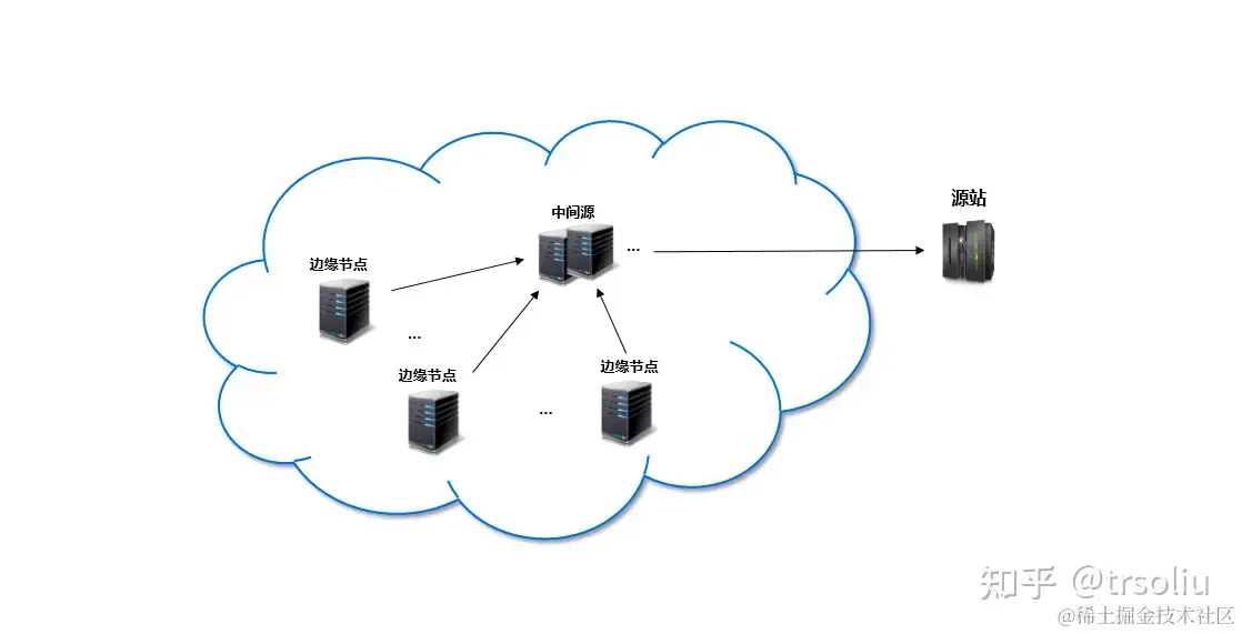 CDN服务器与源站点示意图: