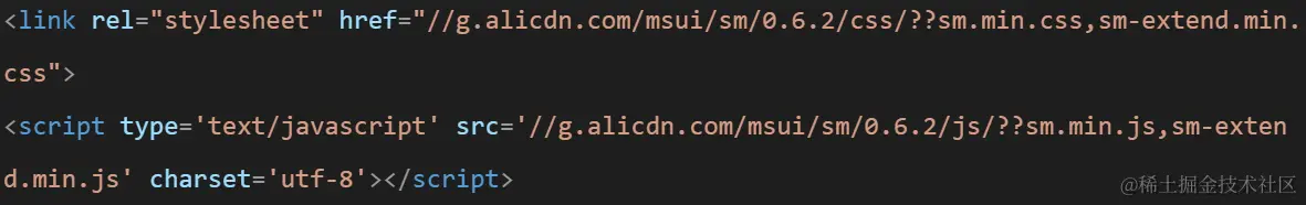 除手动在项目代码层面做文件的合并优化外,也可以使用CDN的Combo服务。Combo 是 CDN 的一项技术,它的核心是把对静态资源文件们的多次请求合并到一起,达到请求一次 URL(减少了请求次数),就可以同时获取多个静态文件的目的。以下是参考代码: