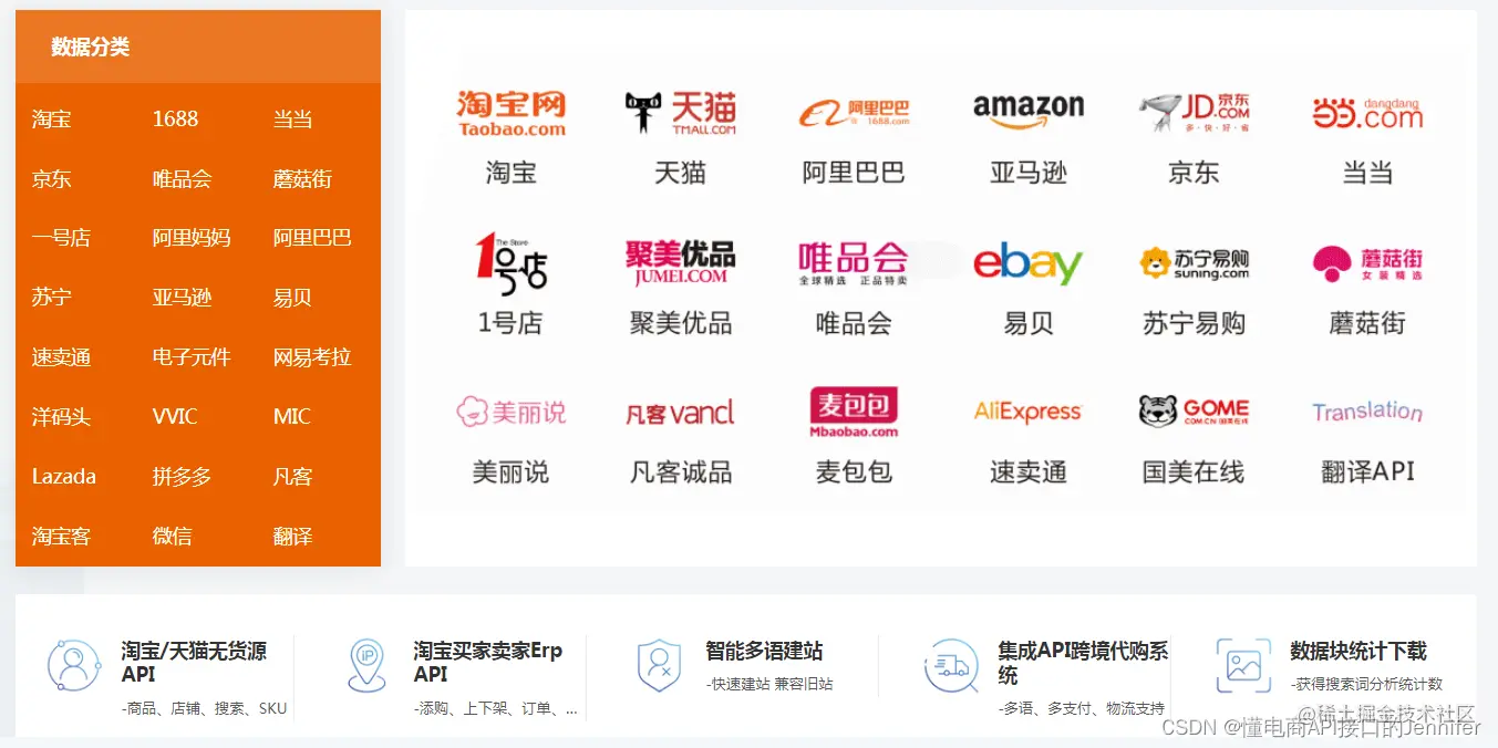 国内外主流电商平台二十多个,商品数据订单数据买家卖家数据齐全,支持高并发请求