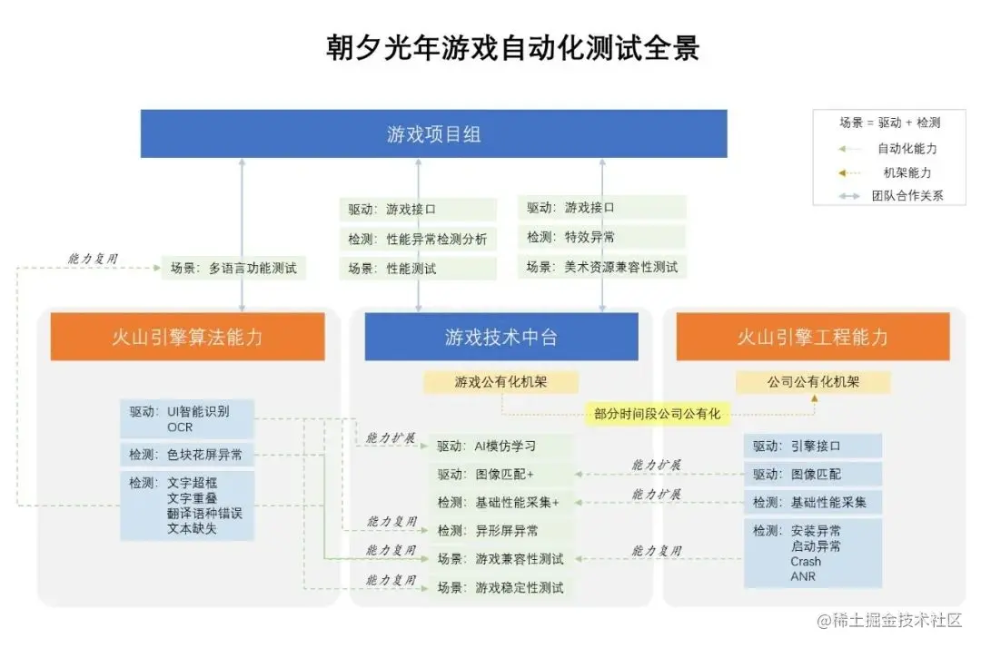 经过这几年的测试实践,目前自动化在兼容性测试、稳定性测试、性能测试、多语言本地化测试、功能回归的部分需求中都有应用,此篇将聚焦分享朝夕光年在自动化能力分解、自动化能力评估、自动化的成熟度、自动化测试全景等四个方面的实践,期望能为行业内开展自动化工作提供思路以及给到对游戏行业/游戏自动化测试方向感兴趣的同学们一些启发。