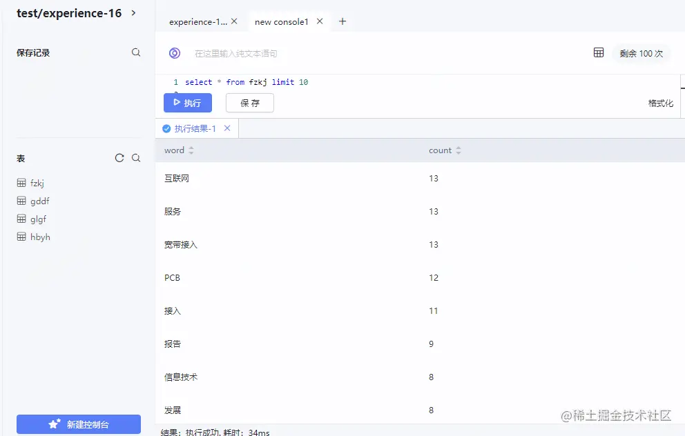 将读取的excel 数据保存到数据库对应的表中 如下是通过读取excel后存入数据库的数据,在使用上与常规的数据库没有差别