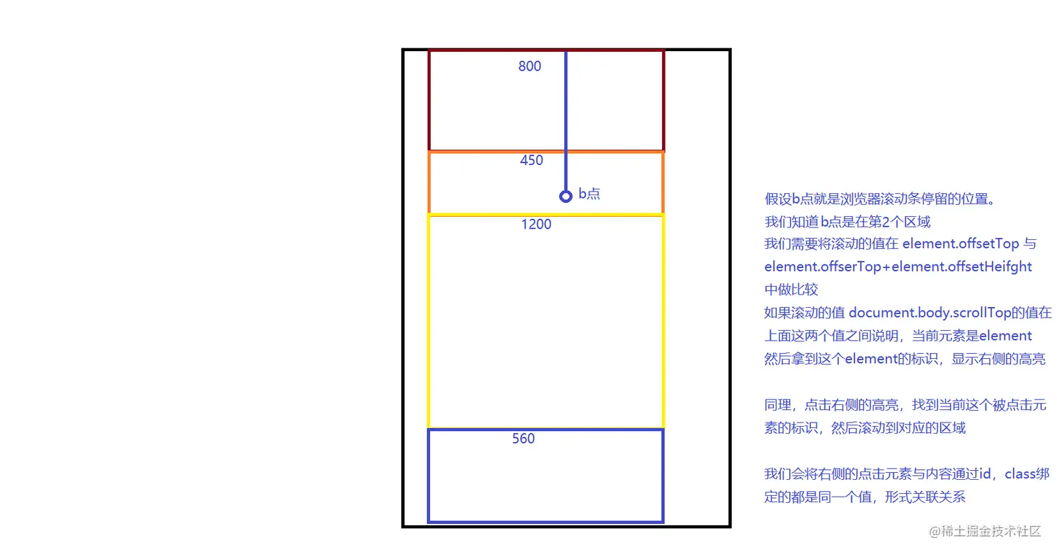 2.滚动的时候,右侧导航的分类高亮