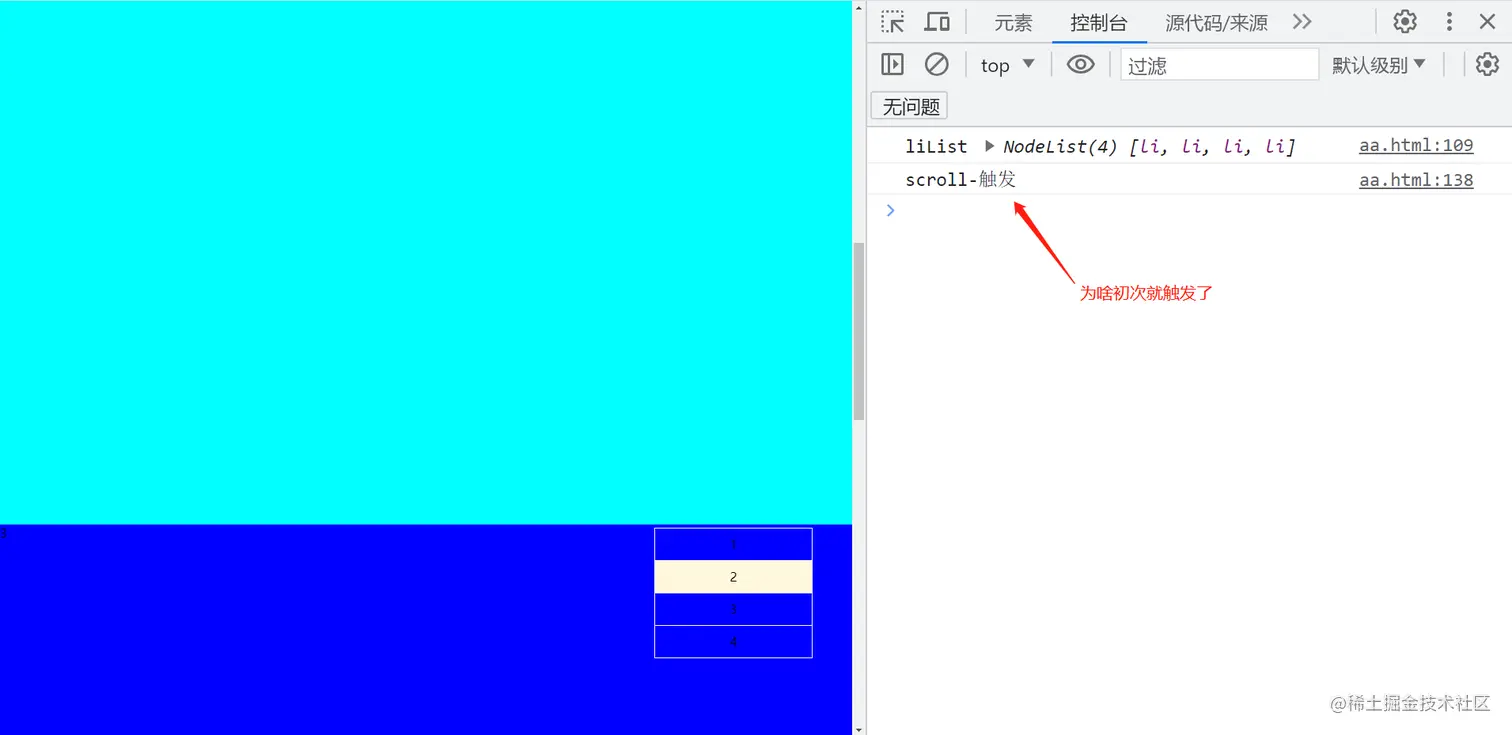 因为:刷新的时候可视区域距离顶部有距离。所以滚动事件会被触发;【现象】