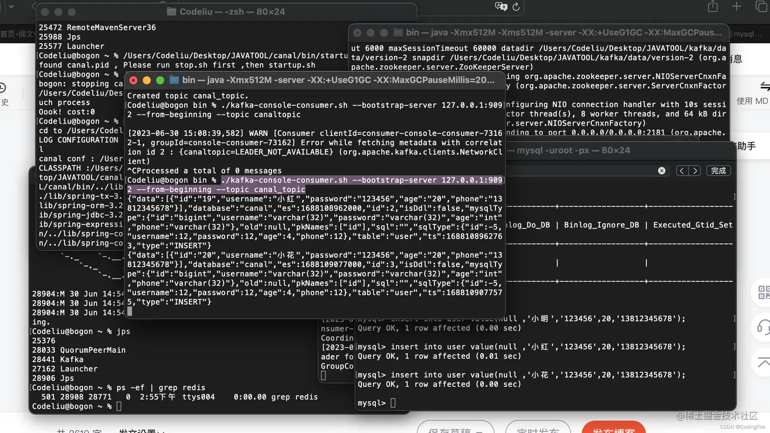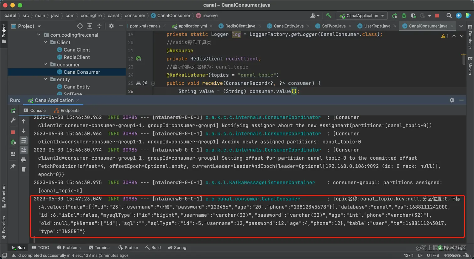 前文中,我们讲解了Canal的基本用法,用来监听数据库的变化,对数据库和Canal的一些基础配置都在这里: