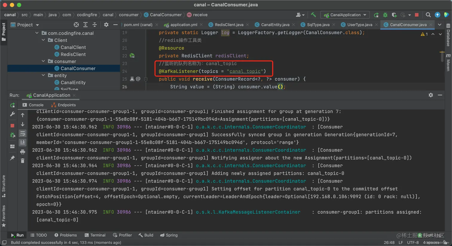 private static Logger log = LoggerFactory.getLogger(CanalConsumer.class);