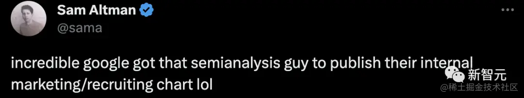 没想到,这篇爆料引来Sam Altman围观,并表示,「难以置信的是,谷歌竟然让那个叫semianalysis的家伙发布了他们的内部营销/招聘图表,太搞笑了。 」