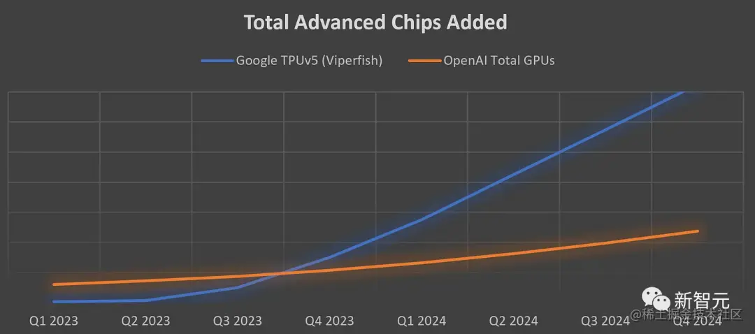 如下图表中的增长,只有TPUv5(ViperAsh)可视化。