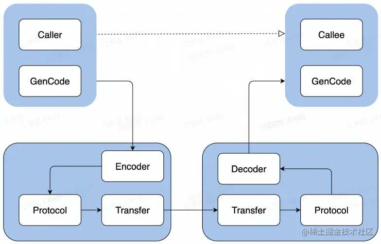 编码只是解决了跨语言的数据交换格式,但是如何通讯呢?需要制定通讯协议,以及数据如何传输?我的网络模型如何呢?那就是这里的 transfer 要做的事情。