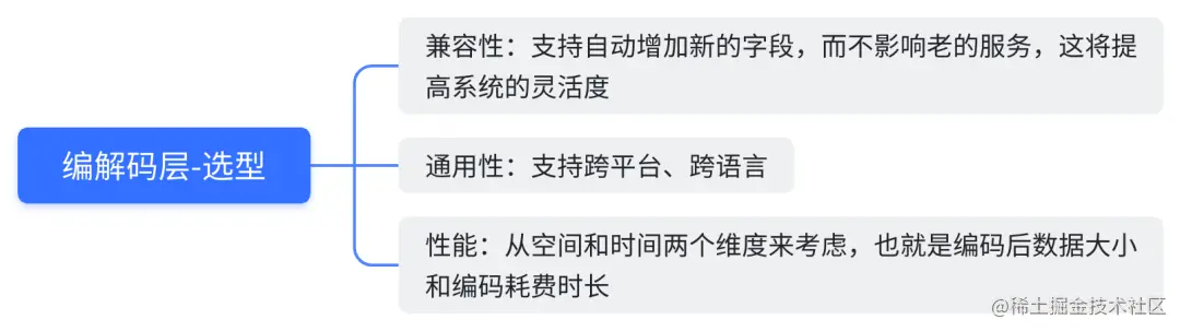 兼容性:移动互联时代,业务系统需求的更新周期变得更快,新的需求不断涌现,而老的系统还是需要继续维护。如果序列化协议具有良好的可扩展性,支持自动增加新的业务字段,而不影响老的服务,这将大大提供系统的灵活度。