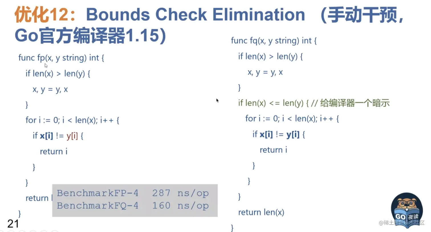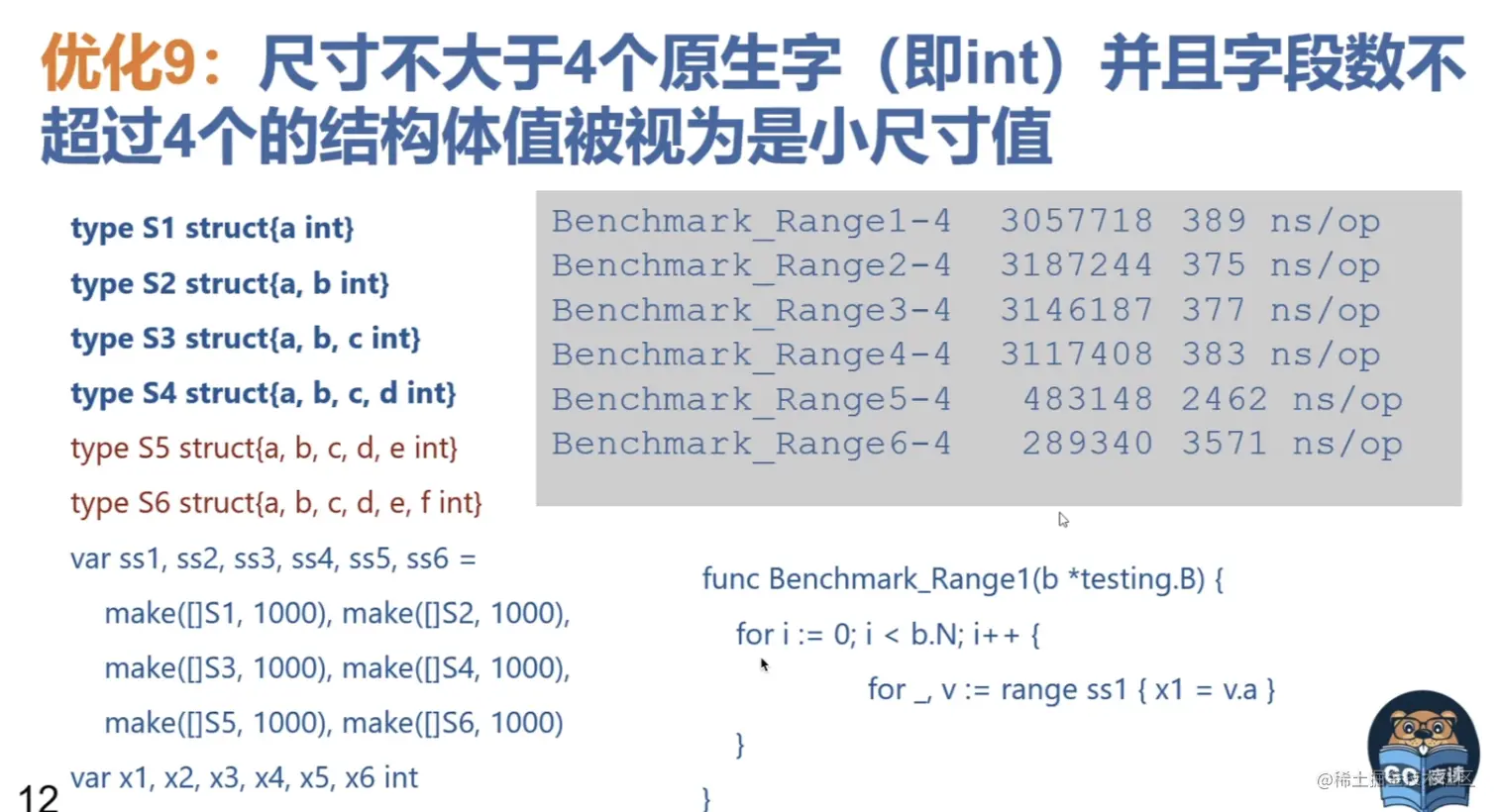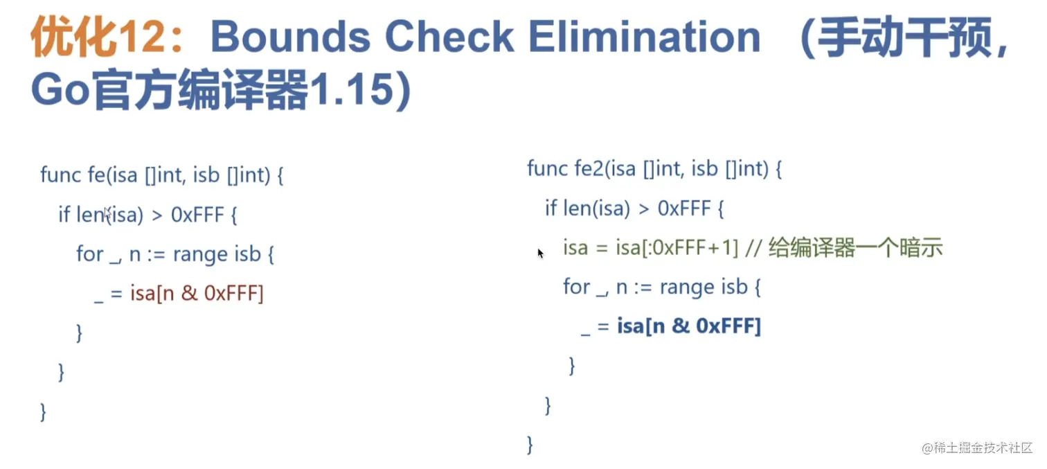 7.for i := range anArrayOrSlice{anArrayOrSlice[i]} = zeroElement} 形式 将被优化为一个内部的memclr操作